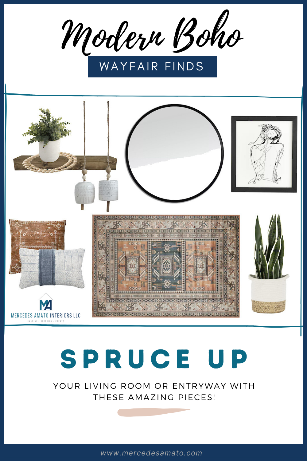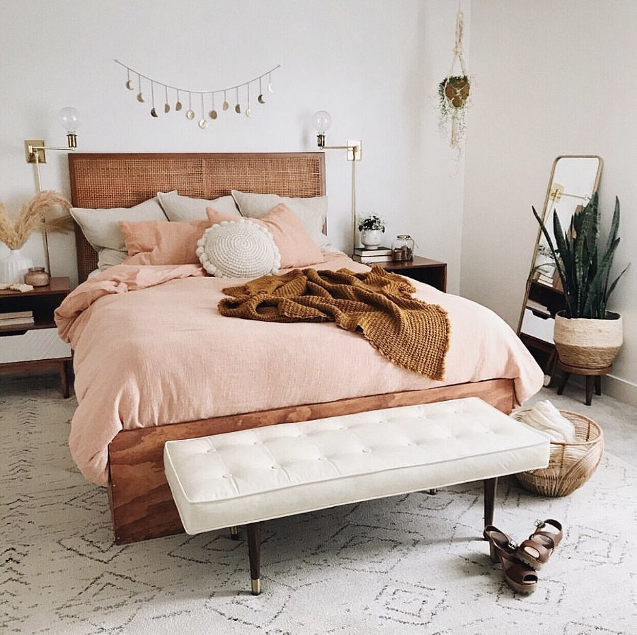 I don’t know about you, but I tend to gravitate towards a couple of different design styles. Two of them being Midcentury Modern and Boho. Combining these two styles is fairly easy and they mesh REALLY well together (I’m sure you’ve seen Modern Boho designs everywhere on Pinterest and Instagram without even realizing it). Do these pics below look familiar? Maybe, maybe not. But you can get a sense of what I’m talking about.