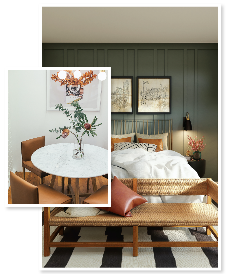 - You will provide photos of inspiration (or a Pinterest board), colors, styles, patterns, finishes